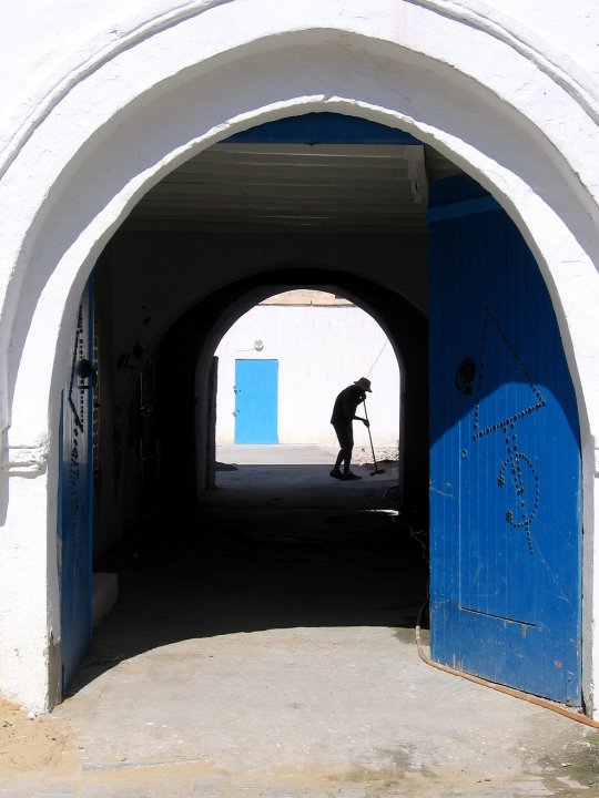 signalez un problèmej'ai voulu transcrire l'atmosphère paisible de ce lieu. Le portail ouvert incite à y pénétrer... et chacun peut entrer dans l'image à la rencontre de l'homme qui balaie.