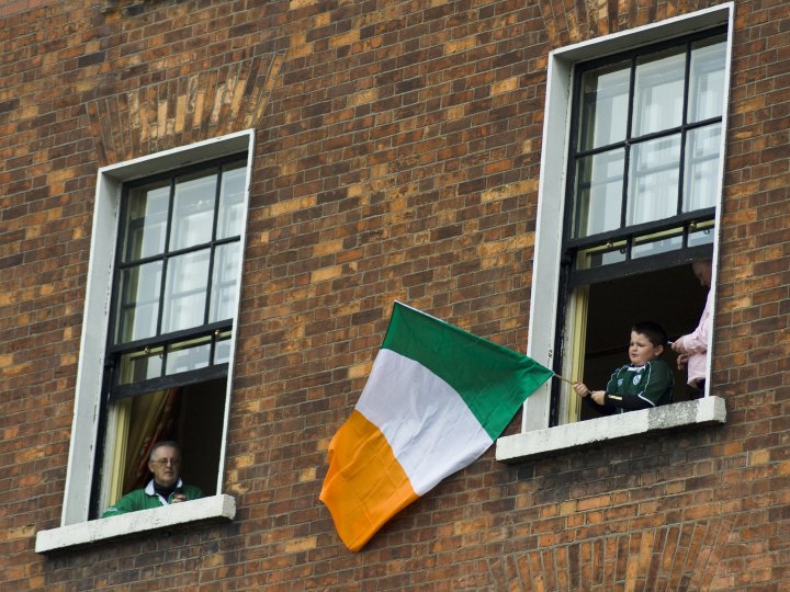 Drapeau irlandais lors de la parade de l'équipe de Rugby après avoir remporté le Grand Chelem en 2009