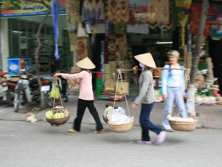 Quel dommage pour le flou !! Tu étais en pousse-pousse ou en voiture, peut-être ?? Je ne pense pas que ces deux vendeuses marchaient si vite que cela, hein !!! Bon, c'est vraiment bête que le rendu soit si flou....
