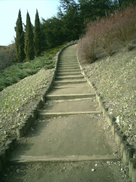 un petit escalier sans prétention. Dommage que la photo n'ait pas été prise au printemps ou en été avec une végétation plus fleurie