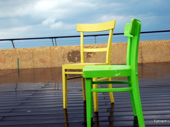 D'ailleurs en agrandissant la photo vous pourrez voir les gouttes de pluie sur les chaises....