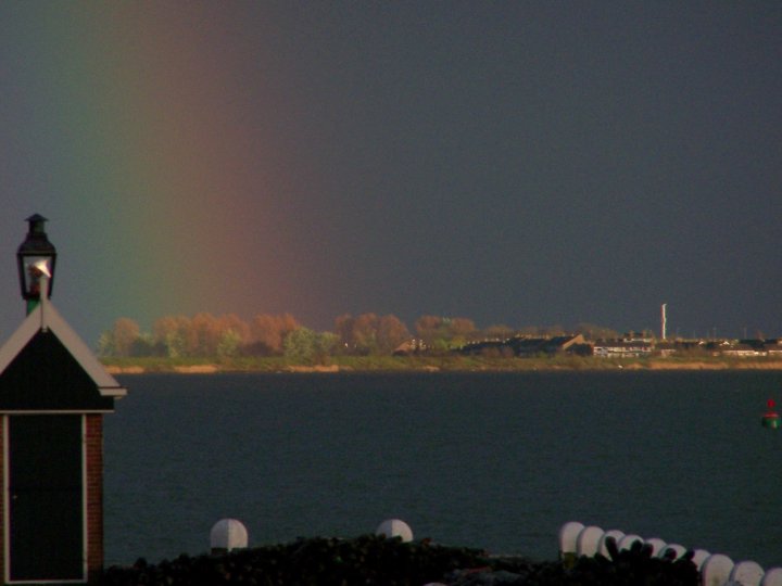 Avril 2008 - Pays Bas - D'une terrasse d'un restaurant à Valendam : il pleut sur Marken (Juste pour participer car rien d'autre en magasin !!)
