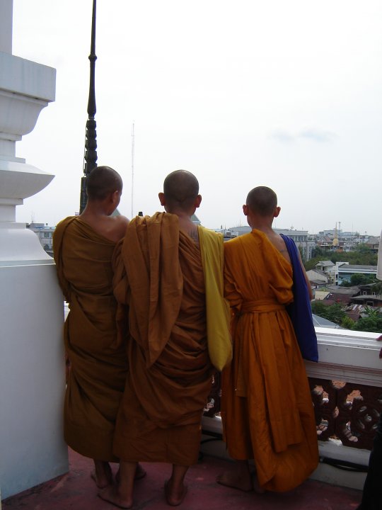 Rencontre fortuite avec 3 bonzes dans les hauteurs de Bangkok.
