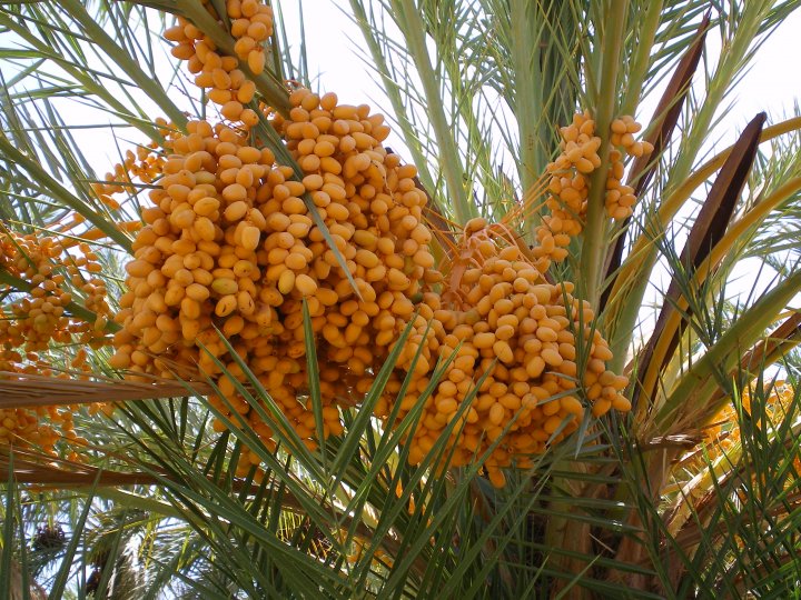 signalez un problèmeDes dattes à foison et d'un bel orangé !! Une ch'tite dégustation s'imposerait, non !! Mais bon, je n'ai jamais mangé de dattes à ce stade....je ne les connais que "sèches", de couleur brun soutenu...