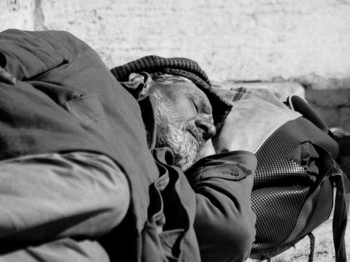 jolie photo en NB , mais plus d'explications seraient les bienvenues , s'agit-il d'un pauvre hère ? Dans ce cas, j'apprécie moins le cliché, le thème étant détourné , çà me met plutôt mal à l'aise