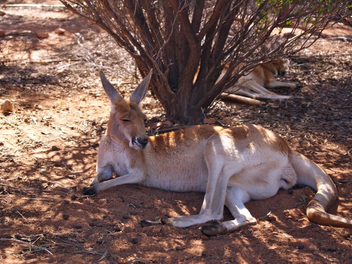 Kangourou faisant une petite sieste à Alice Springs, Australie
