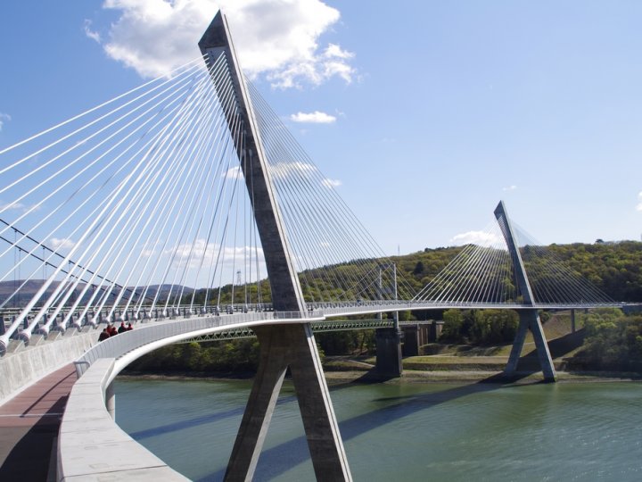signalez un problèmeBelle photo du Pont de Térénez vu sous un autre angle. On aperçoit en arrière-plan l'ancien pont. Belle luminosité.