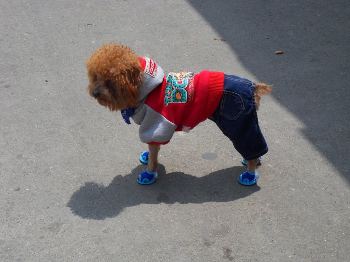 signalez un problèmemon Dieu ! le monde devient fou ma bonne dame !!! pôve tite bête, le ridicule ne tue pas heureusement , pour lui ! s'il pouvait parler ..... en plus il doit se faire foutre de lui par ses congénères ! je voudrais bien le voir marcher avec ses sandales , tiens !! sont "zarbis" les gens quand même .....