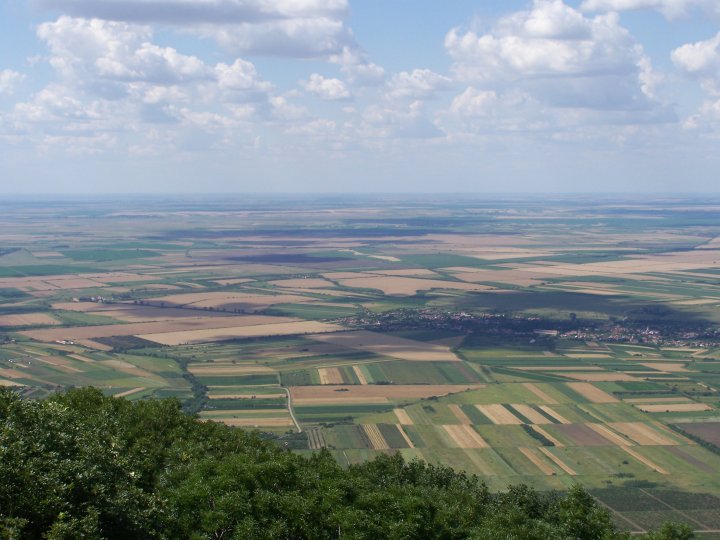 A la limite entre la Roumanie et la Serbie. Vue du "pic" Gudurica... 641 mètres, le mont le plus élevé de la Voïvodine ;-) La Voïvodine est LA région agricole de la Serbie d'où ces étendue de champs, aux couleurs peu gaies (je m'en excuse, c'est juste pour participer ^^)