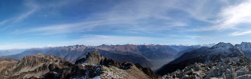 Vue des alpes et du mont blanc depuis le sommet des Grands Moulins 2495m (Savoie - Massif de Belledonnes).