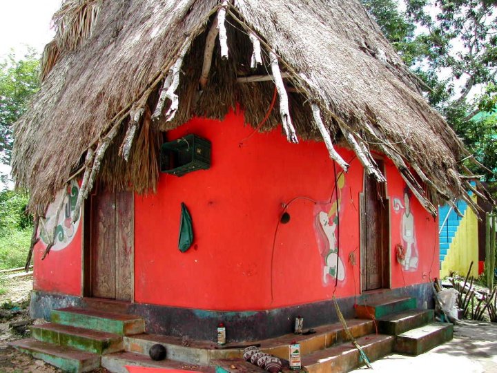 Dans la campagne méxicaine, une jolie petite maison très colorée, d'une forme arrondie, avec un toit de chaume tenu par des branches. Pedro, le maître des lieux, est un artiste très original et très sympathique