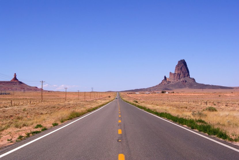 Il me semble que c'est la route qui mène à Monument Valley. Ces grands espaces, quelle sensation de liberté!