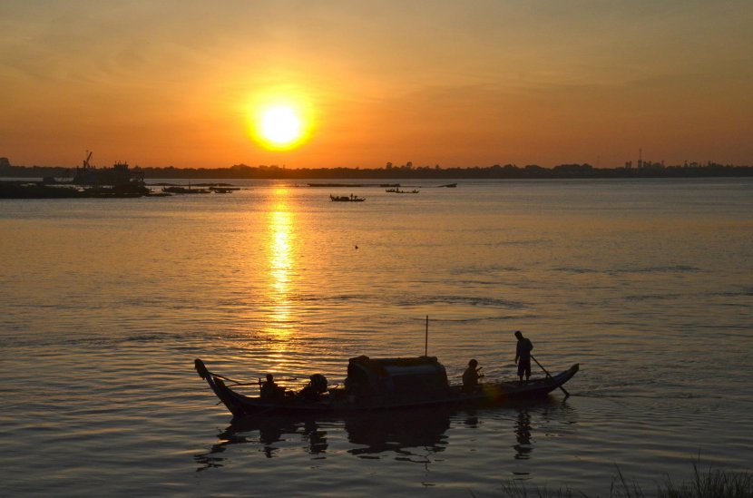Lever de soleil sur le Tonlé Sap au Cambodge