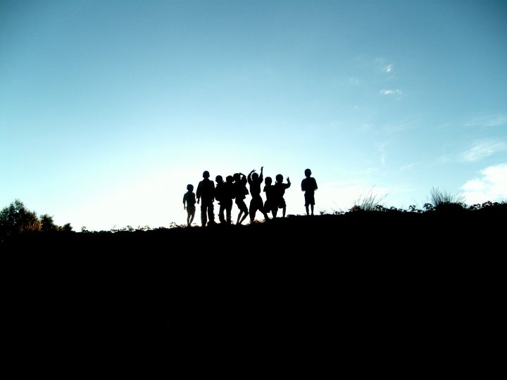 J'aime bien l'originalité de cette photo, même si je rejoins Mimi 48 à propos du cadrage, qui aurait pu être revu : centrage un peu plus sur les enfants ??? Ou bien alors la prise de vue, en contre-plongée pour avoir une envolée vers le ciel qui est magnifique, car trop de noir en premier plan pour moi.