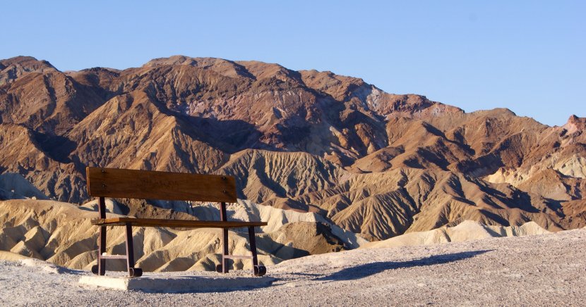 Banc public au Zabriskie Point, Death Valley Nat. Park, Californie, USA