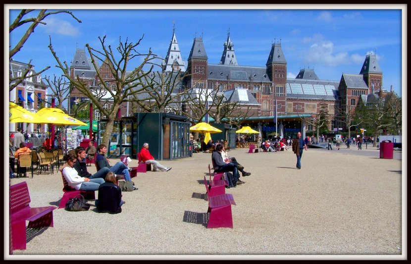 Devant le Rijskmuseum d'Amsterdam - qu'il est doux profiter des premiers rayons de soleil d'avril en dégustant un sandwich aux harengs !!