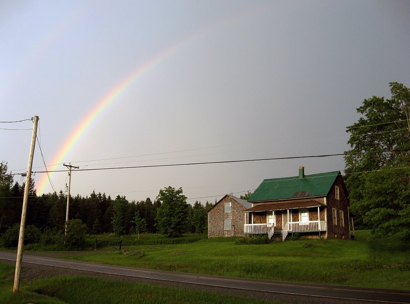 signalez un problèmeBel arc-en-ciel, joli paysage champêtre du Québec mais le poteau de gauche en 1er plan gâche vraiment la photo.