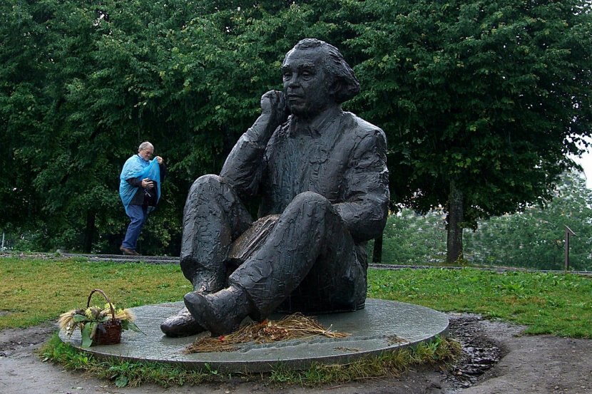Cette statue de bronze est dédiée à Gustav Ernesaks un compositeur estonien. Elle se situe sur ,une colline qui surplombe l'auditorium de chant de Tallinn où a démarré, en 1988, la ''Révolution chantante'' . Cette puissante manifestation musicale dirigée contre le pouvoir soviétique, est un point départ des événements qui ont mené l’Estonie, la Lettonie et la Lituanie à l’indépendance. J'ai choisi de conserver ce touriste qui, après l'averse, peut enfin ressortir son appareil photo.