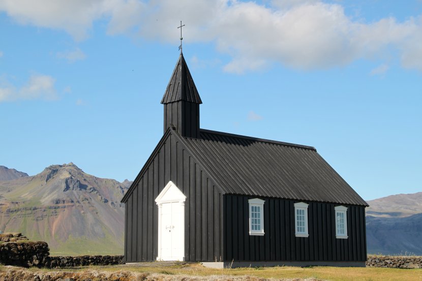 Charmante église perdue au milieu des volcans en Islande.
