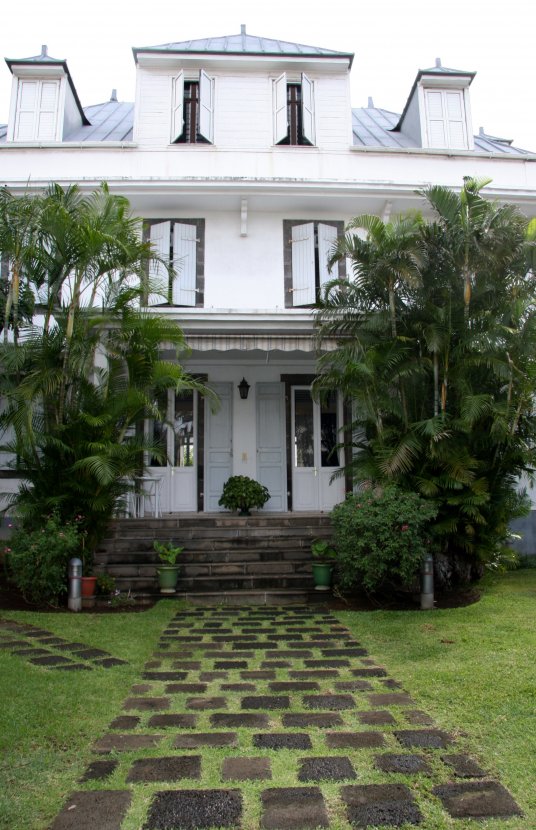 Dans le silence d'une chaude et pesante atmosphère d'un après midi d'avril, volets mi-clos, la villa semble comme endormie dans son écran de verdure. St Denis de le Réunion avril 2010