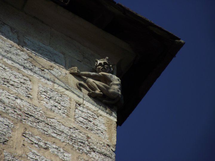 La légende est belle. Le diable aurait pu être plus grand. Le soleil met en relief la sculpture.