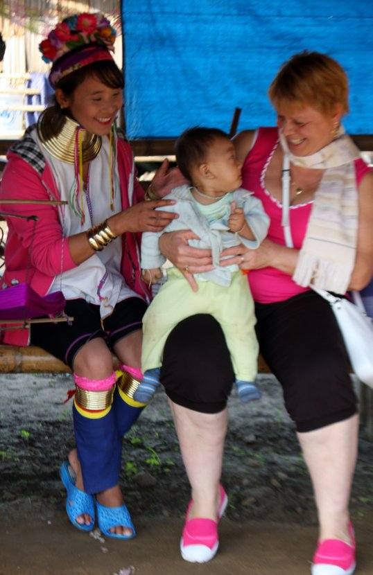 "Générations sans frontière" Nord de la Thaïlande novembre 2012. Rencontre d'une jeune maman Karens qui n'a pas hésité à confier son petit bébé à mon épouse le temps d'une photo. (Hélas la photo est un peu flou mon 17-85mm était tombé panne, photo prise avec un 55-250mm)