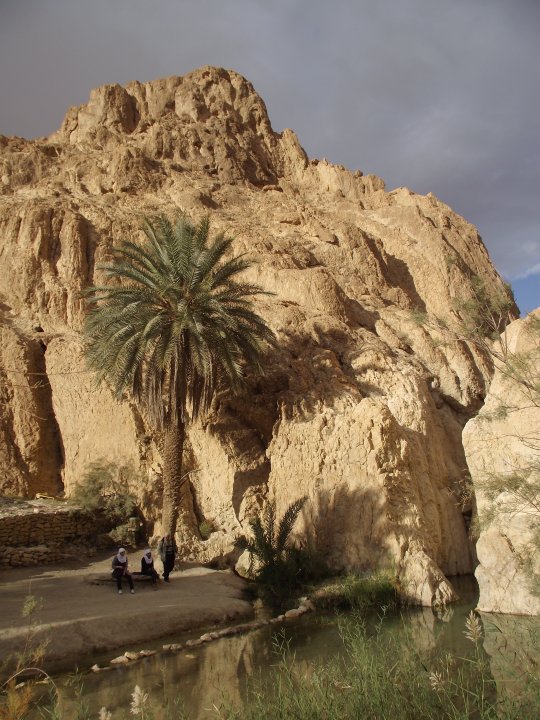 TUNISIE - Décembre 2011. Près de Tamerza, une source a crée une oasis au milieu des montagnes et j'ai eu la chance de remonter le court d'eau jusqu'à ce petit lac réservoir où des personnes étaient assises là tranquillement. Résultat un cliché "carte postale" dans mon appareil ;) Le choix était compliqué mais cette photo est une "coup de coeur" de mon voyage tunisien...