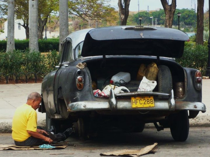 Les cubains sont fortiches pour entretenir ces 'vieilles caisses' car ils n'ont pas les moyens de se payer des modèles plus récents. Bien vu pour cette scène de vie.