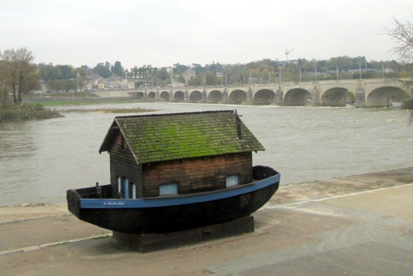 Au cœur de Tours, en bords de Loire, une vieille maison embarquée sur un bateau posé en marge du fleuve.