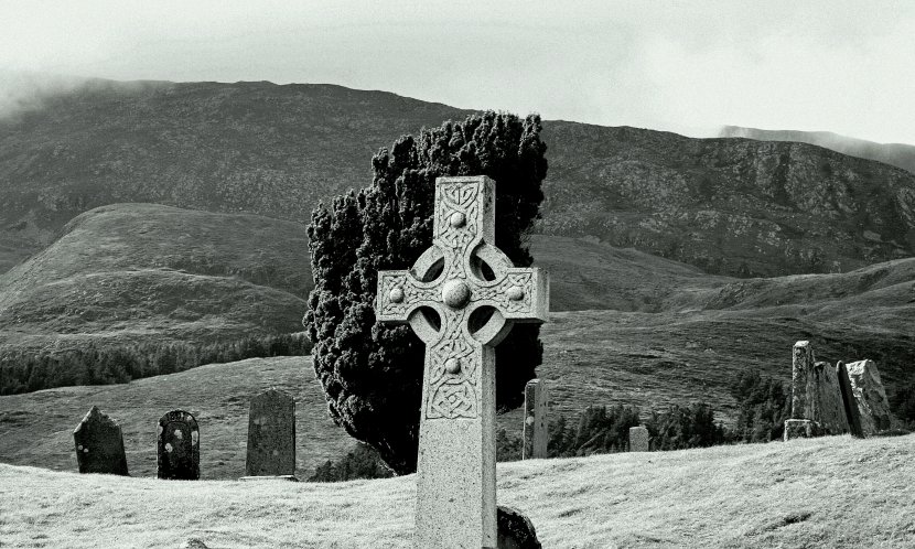 Ambiance bien écossaise! La croix se détache bien sur un fond sombre, mais cela fait une superposition d'éléments centrés et l'ensemble aurait peut être mieux bénéficié d'un autre angle de vue