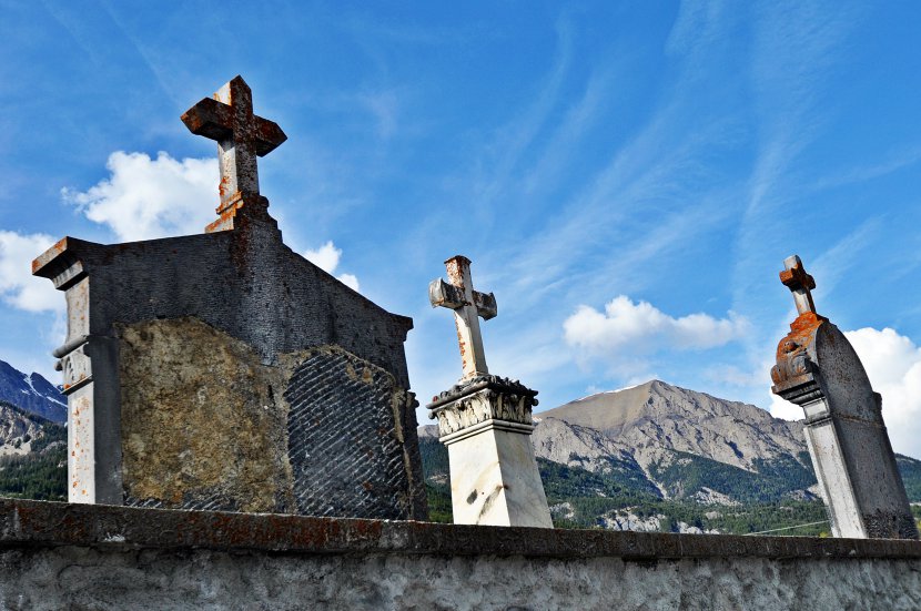Je ne regarderai ni l'or du soir qui tombe, Ni les voiles au loin descendant vers Harfleur, Et, quand j'arriverai, je mettrai sur ta tombe Un bouquet de houx vert et de bruyère en fleur. Victor Hugo (Photo d'un petit cimetière des Alpes)