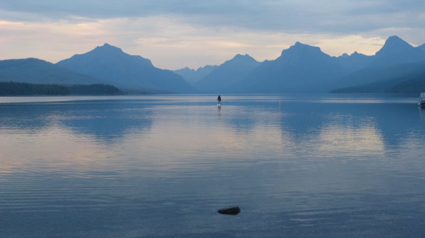 Etats-Unis, Montana. Lac Mac Donald à Apgar Village. Etrange couleur d'un coucher de soleil derrière les montagnes du parc des Glaciers...