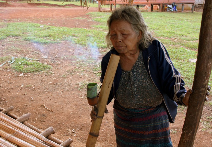 Fumeuse de pipe de l'ethnie Kroene, région du Ratanakiri, Cambodge