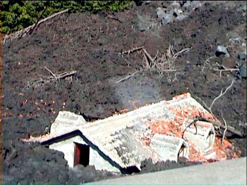 abandonnée par force maison sur les pentes de l'ETNA ensevelie par une coulée de lave volcan toujours très actif photo scannée pas très belle, mais la source est tarie rien en stock