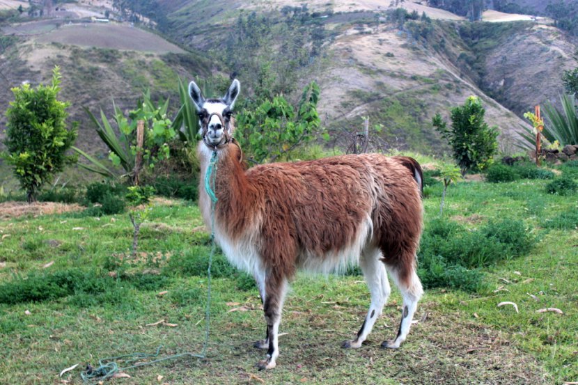 Équateur 2014 - Cahuasqui Avant la conquête espagnole, près d’un million de lamas se seraient partagés les terres de l’Équateur. La quasi-extinction de cette espèce a eu lieu lorsque les européens ont décidé de remplacer peu à peu le lama par les bovins et les ovins, davantage considérés. Il existe depuis quelques années des projets pour repeupler l’Équateur de lamas. En effet, le lama présente de nombreux avantages : sa viande qui permet de lutter contre la malnutrition, sa laine mais également le lama comme attrait touristique.