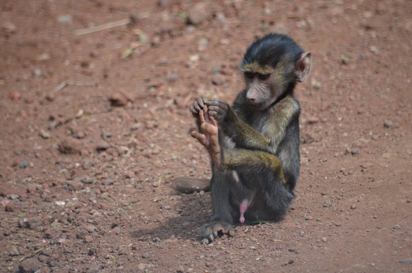 Parc national de Tarangire (Tanzanie), après l'épouillage petite séance de manucure pour ce petit babouin !!!!