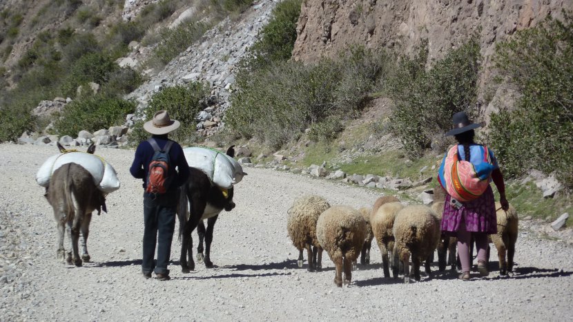 1er mai 2014, au détour de cette petite route longeant la Vallée de Colca (Pérou), nous apercevons ces 2 personnes qui redescendent des champs avec leur animaux.