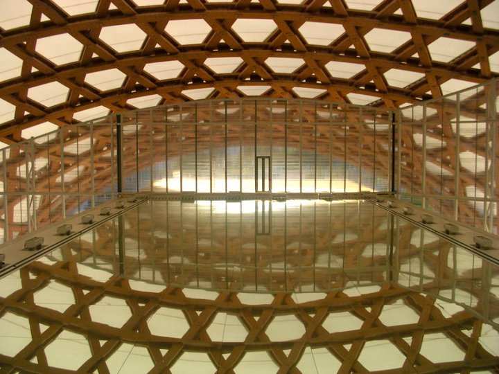 Effet de miroir avec la toiture du Beaubourg-Metz La toiture elle-même – vue de l’intérieur - offre un beau damage en étoiles et, dans certains points, on observe son reflet en symétrie parfaite.
