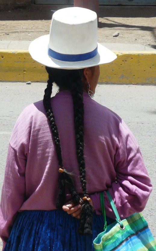 signalez un problèmeBelles nattes pour cette 'cholita', photographiée discrètement, de dos. Il est sans doute difficile de faire autrement, ne serait-ce-que pour voir ces nattes. Bien pour ce thème.