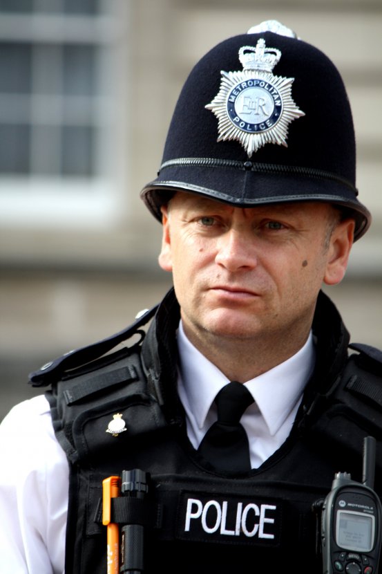 Coiffure traditionnelle et caractéristique des officiers de police de Londres.