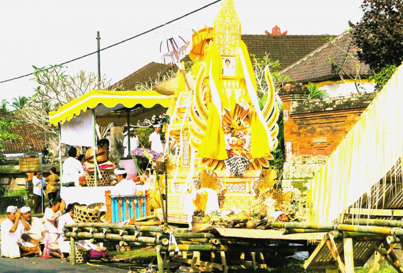 Cliché pris à l'arrière d'une voiture "fissa" à Denpasar (Bali). Il s'agissait de funérailles d'un homme d'un certain âge. Recueillement autour de la dépouille qui sera ensuite suivie d'une crémation. D'après mon chauffeur-guide, le feu libèrera l'âme du défunt et une grande fête joyeuse et fastueuse clôturera cet événement.