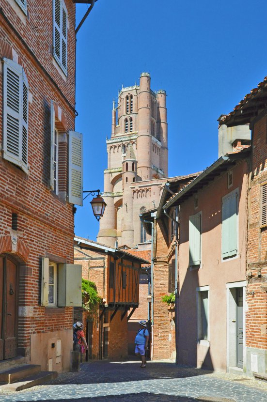 Voyage au Sud de la France: ruelle dans le vieil Albi, dominée par sa célèbre cathédrale.