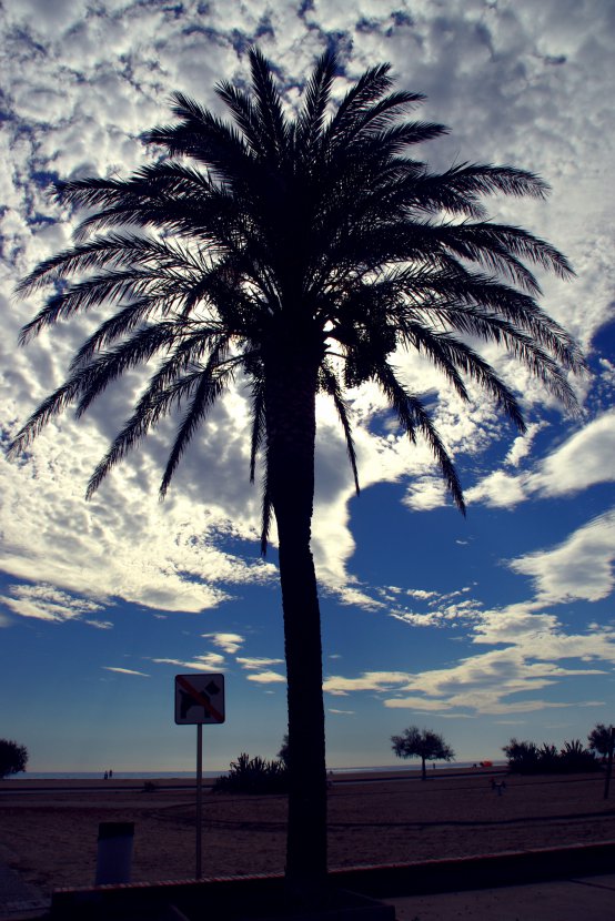 signalez un problèmeLe panneau et la poubelle me dérangent pas mal moi aussi ... mais la tête (du palmier) dans ces jolis nuages sur fond bleu et en contre jour, est plutôt bien fait !