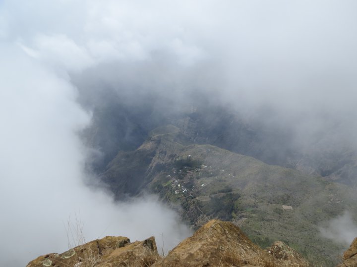 certainement une vue prise depuis la fenêtre du Maïdo. Bien dans le thème mais la vue par temps dégagée est grandiose dommage pour le visiteur des lieux.