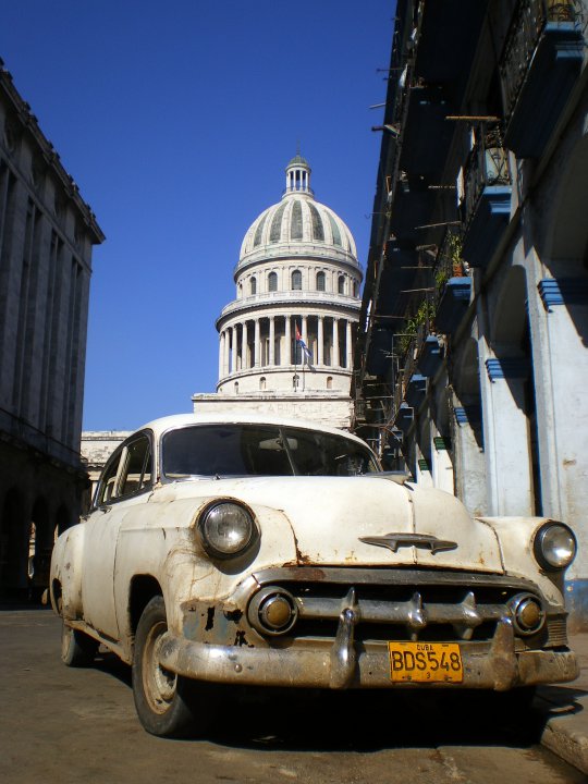 A Cuba, au centre de la vieille Havane, les symboles peuvent être nombreux. Ce cliché en reprend trois : - Le Capitol situé en plein cœur de la ville, ce batiment abrite aujourd'hui un centre des congrés. « El Capitolio » symbolise le point zéro de toutes les routes du pays. - Les « vieilles américaines », véhicules mythiques des années 50, qui complètent l'ambiance générale. - Moins visible sur les côtés, les vieux batiments de types hispaniques, pour certains à moitié délabrés et pour d'autres a moitié restaurés (parfois que la facade) Il manque toutefois sur cette photographie ce qui a mes yeux est le symbole essentiel : les habitants et leur gentillesse.
