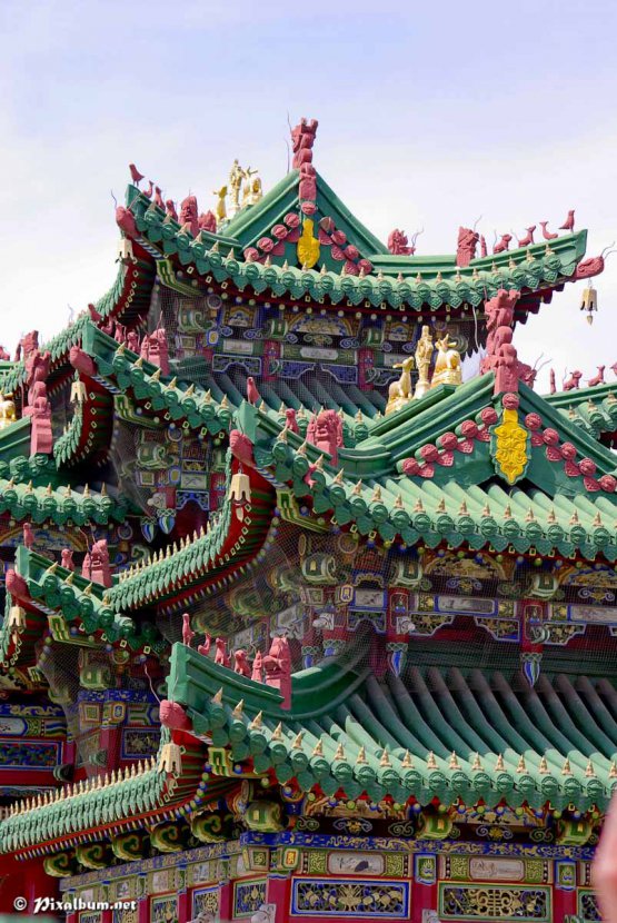 Toit de temple aux multiples facettes au cœur de la capitale mongole, Oulan-Bator