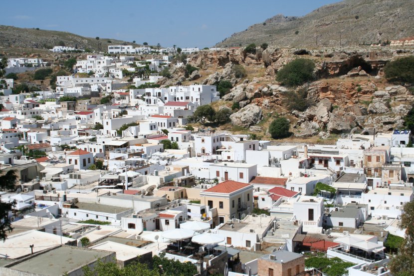 Les toits de Lindos sur l'île de Rhodes