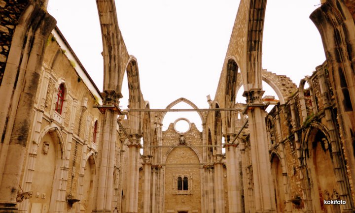 "LE COUVENT DES CARMES A LISBONNE" : L'ancienne église gothique s'écroula lors du violent tremblement de terre, suivi d'un tsunami, en 1755, et ne fut jamais reconstruite. C’est intentionnellement que les autorités portugaises décidèrent de ne pas procéder à la reconstruction. Alors, c'est vrai que c'est une ruine, et non un bâtiment à l'abandon, puisqu'elle abrite le musée archéologique du Carmo1 et que de nombreux concerts y ont lieu. SVP, ne me tombez pas dessus à bras raccourcis, je sais ce n'est pas vraiment le thème, je poste cette photo, juste "pour participer", vu que je n'ai rien d'autre à proposer qui ne l'ait été par vous autres
