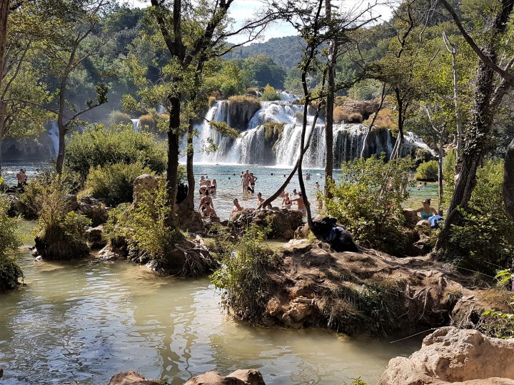 signalez un problèmekrka est effectivement un très bel endroit , mais pour y être allée aussi , je ne peux dire que l'endroit possède une "plage". Il y a certes beaucoup de gens qui s'y baigne , et surtout des bandes de jeunes qui sautent du haut des chutes