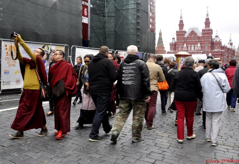 signalez un problèmeComme les autres sont tous de dos, on les remarque bien ces moines modernes ! Belle vue sur le Kremlin, mais hélas il y a la bâche noire que tu ne pouvais éviter de figurer sur ce cliché.